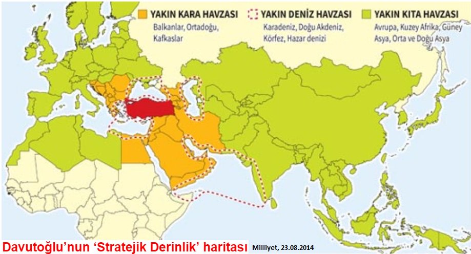 23 Ağustos 2014 tarihli Milliyet gazetesindeki çizime göre, Ahmet Davutoğlu'nun Stratejik Derinlik haritası